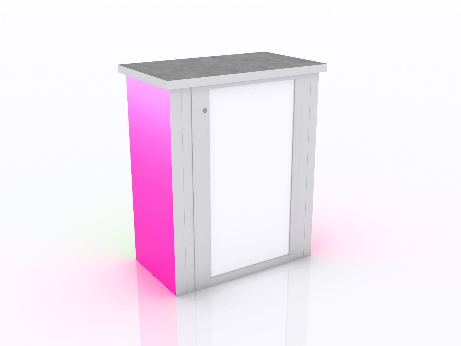 When choosing the right counter or pedestal for your display, consider how you will use it on the show floor. Do you need locking storage? Will the counter or pedestal hold a lead retrieval machine, laptop, or other electrical device? If so, you will need wire management. That may be as simple as ordering a grommet for the counter. If you are planning to use a tablet computer, consider the tablet insert option for the counter top. This option is practical, attractive, and secure for many tablets, such as an iPad.